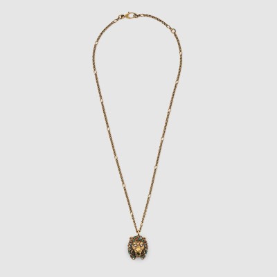 Gucci 19 autumn and winter women's colorful crystal lion head necklace 578920 I4769 8522